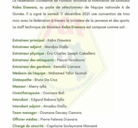 Confirmé à la tête de l’équipe de Guinée au moins jusqu’à la CAN 2022, Kaba Diawara a composé son staff. On note la présence...