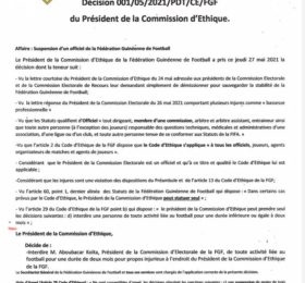 CONAKRY- Dans une décision publiée ce jeudi, la commission d’éthique dirigée par Amadou Tham Camara a annoncé la suspension du...