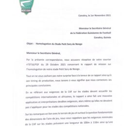 CONAKRY- Dans un courrier adressé à la Fédération Guinéenne de Football, la direction du stade Petit Sory de Nongo conteste les...