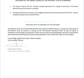 ZURICH- officiellement, Moriba Illaix Kourouma peut à partir d’aujourd’hui défendre les couleurs du Syli National de Guinée. Dans...