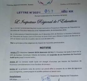 Lancinet Keita, proviseur du lycée 3 avril de Kankan est accusé d’avoir manqué de respect au Directeur préfectoral de l’éducation...