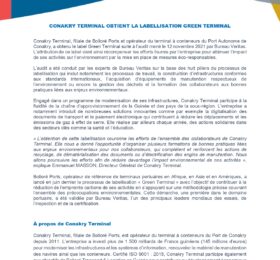Conakry Terminal, filiale de Bolloré Ports et opérateur du terminal à conteneurs du Port Autonome de Conakry, a obtenu le label Green...