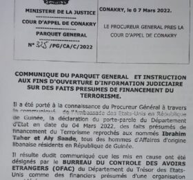 Ce lundi, le procureur général près la Cour d’appel de Conakry, Alphonse Charles Wright, a instruit au procureur près le tribunal de...