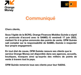 Sous l’égide de la BCRG, Orange Finances Mobiles Guinée a signé un protocole d’accord avec le SAMEL-G vendredi 17 juin 2022, mettant...