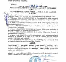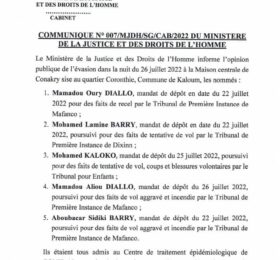 Suite à l’évasion de cinq détenus survenue dans la nuit du 26 juillet à la prison civile de Conakry, Le ministre de la Justice, garde...
