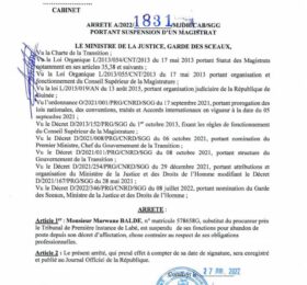 Le ministre de la Justice Alphonse Charles Wright a suspendu mercredi de ses fonctions le substitut du procureur du tribunal de Labé...