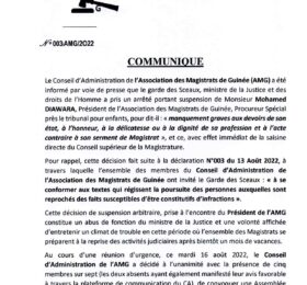 L’Association des Magistrats de Guinée (AMG) ne lâche pas le ministre de la Justice Alphonse Charles Wright. Son conseil...