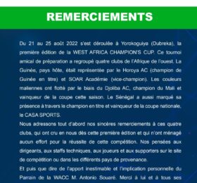L’article WACC 2022 : Les remerciements de la commission d’organisation est apparu en premier sur Guinee7.com....