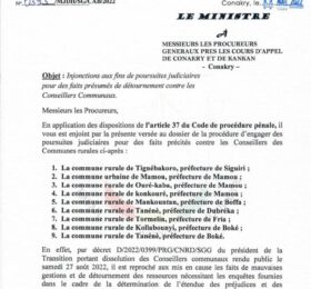 Sale temps pour les conseillers de neuf communes du pays accusés de détournement. Dans une correspondance, le ministre de la Justice et...