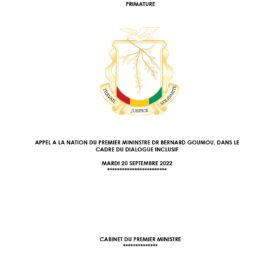Dans un discours qu’il a lu à la télévision nationale, le Premier ministre, chef du gouvernement de la transition Dr Bernard Goumou a...