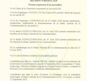 La Haute Autorité de la Communication (HAC) -dirigée par Boubacar Yacine Diallo- a suspendu lundi de toutes les émissions...