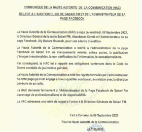 L’article La HAC rappelle à l’ordre l’administrateur de la page Facebook d’un média est apparu en premier sur Mediaguinee.org....