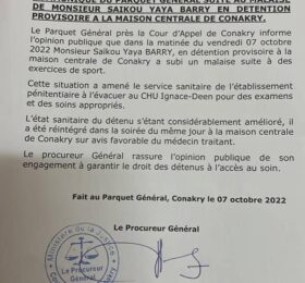 Des communiqués du parquet général près la cour d’appel de Conakry et du ministère de la justice et des droits de l’homme, ont...