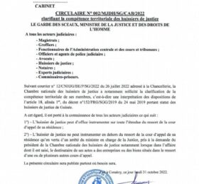Le ministre de la Justice et des Droits de l’homme, Alphonse Charles Wright, a fixé les compétences territoriales des huissiers de...