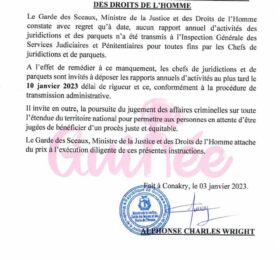A travers un arrêté signé ce mercredi 4 janvier 2023, le ministre de la Justice et des Droits de l’Homme, Alphonse Charles Wright a...
