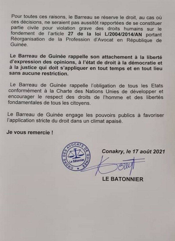 L’article Le Barreau de Guinée exige l’annulation des décisions de l’administration pénitentiaire : vers le retour au cachot des opposants? est apparu en premier sur Mediaguinee.org.