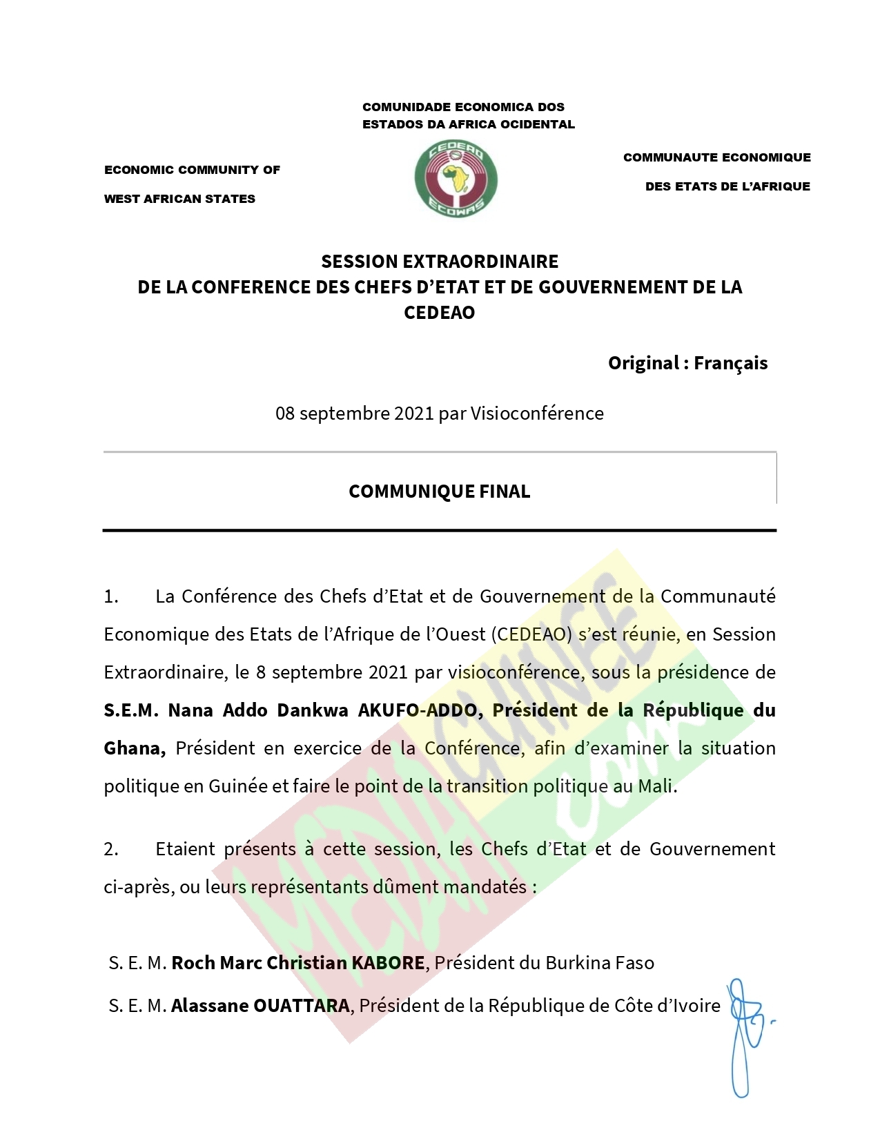 L’article Coup d’État en Guinée : voici les grandes décisions de la Cedeao (copie) est apparu en premier sur Mediaguinee.org.