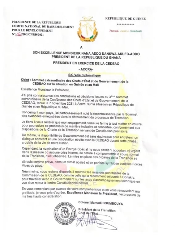 L’article Voici la lettre qui rejette « sagement » la nomination d’un envoyé spécial de la CEDEAO en Guinée est apparu en premier sur Guinee7.com.