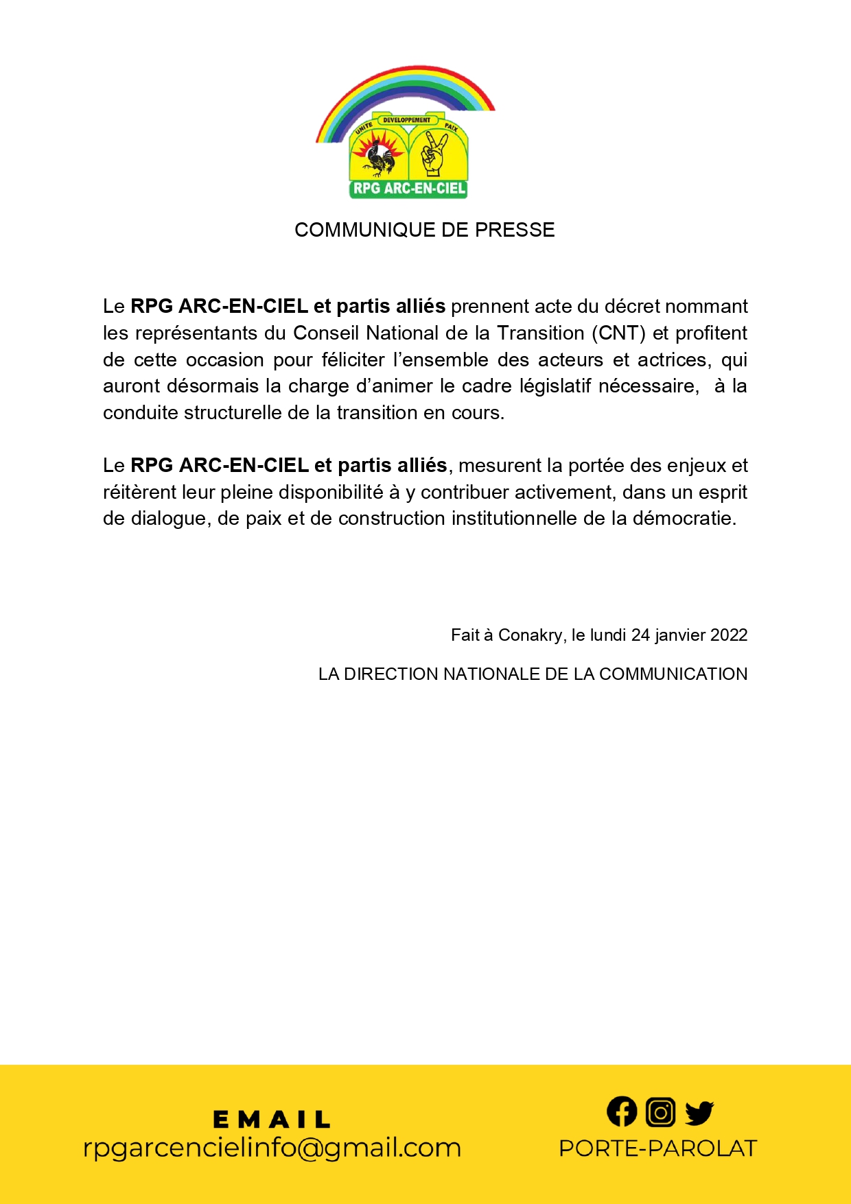 L’article CNT : le RPG et alliés « prennent acte » du décret et « réitèrent leur pleine disponibilité.. » est apparu en premier sur Mediaguinee.org.