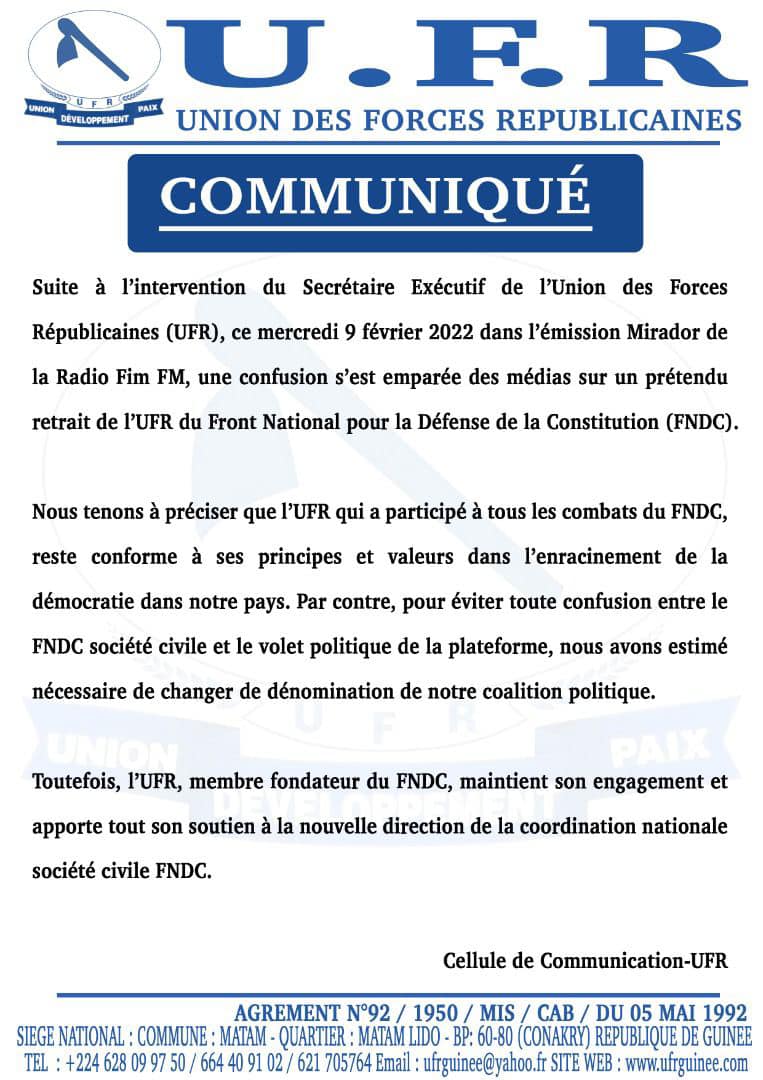 Face à la presse ce jeudi 10 février, M. Boubacar Barry, vice-président de l’UFR (Union des Forces Républicaines) s’est exprimé sur les bisbilles qui animent le FNDC (Front National pour la Défense de la Constitution) ces derniers temps.