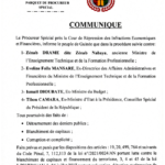 Plus loin, dit-il, « sans que cette liste ne soit exhaustive, le Procureur Général instruit les Procureurs de la République près des juridictions de Dixinn, Mafanco et Kaloum, sur la base des règles de compétence territoriale à requérir l’ouverture d’information judiciaire autour de la cession et l’acquisition des biens immobiliers. »