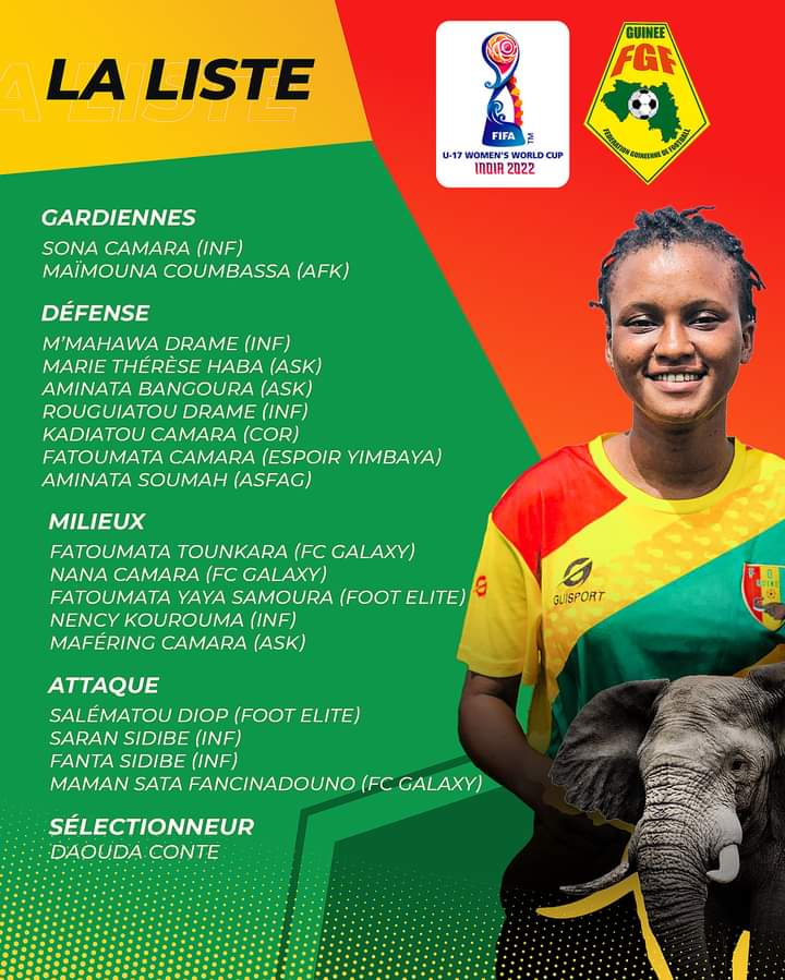 C’est dans le cadre du second tour Aller des éliminatoires de la coupe du monde 2022 prévue en Inde. Ce match aura lieu ce dimanche 6 mars à 16h TU à Monrovia au Libéria. Le sélectionneur Daouda Conté vient de publier la liste des 18 joueuses cadettes retenues. L’équipe quitte Conakry ce vendredi à 15h pour prendre la direction du Libéria.