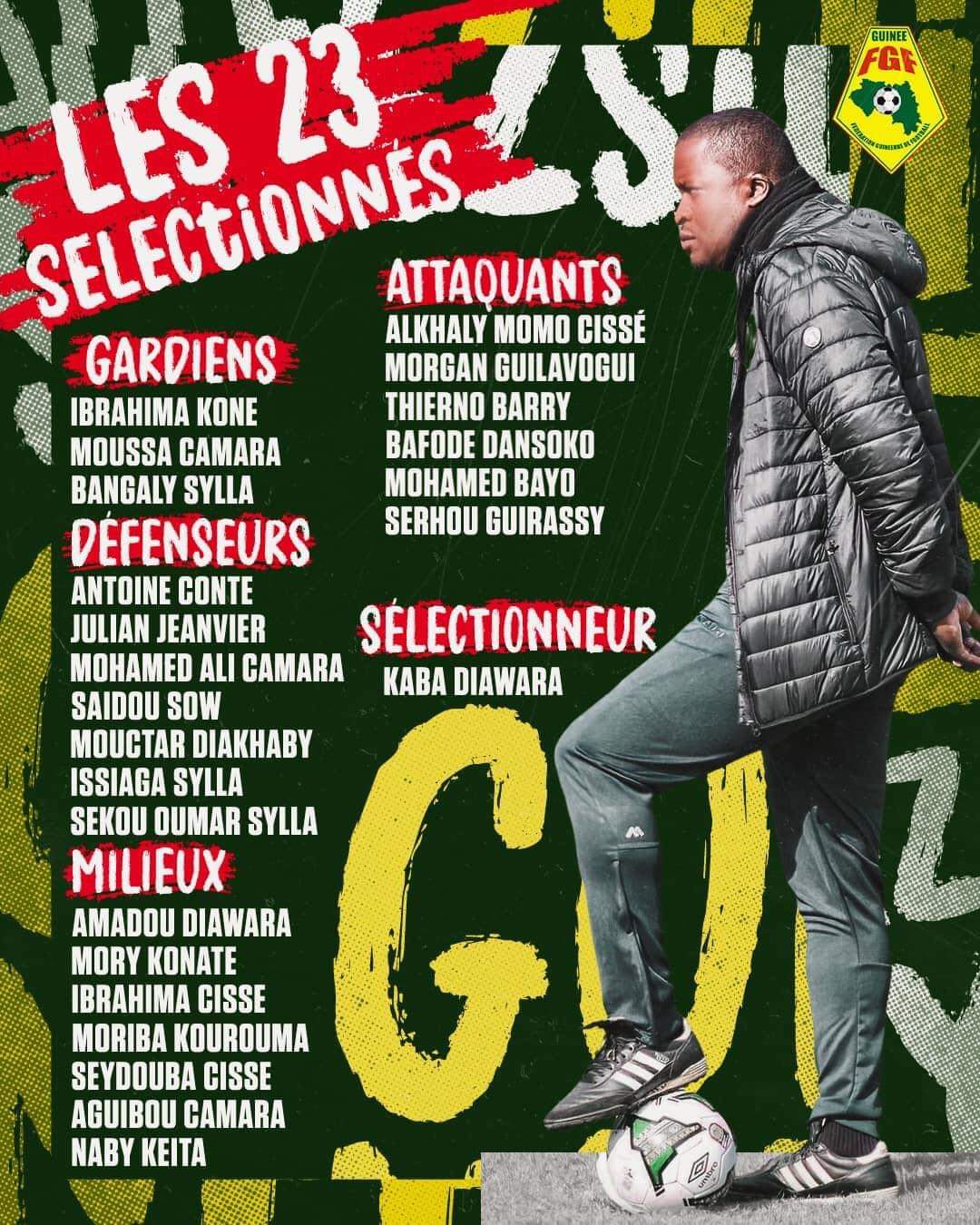 CONAKRY- dans la matinée de ce mercredi, le sélectionneur guinéen Kaba Diawara a animé une conférence de presse au siège de la fédération guinéenne de Football à Conakry, pour rendre public sa liste de joueurs convoqués pour la première et deuxième journées des éliminatoires de la CAN 2023 en Côte d’Ivoire.