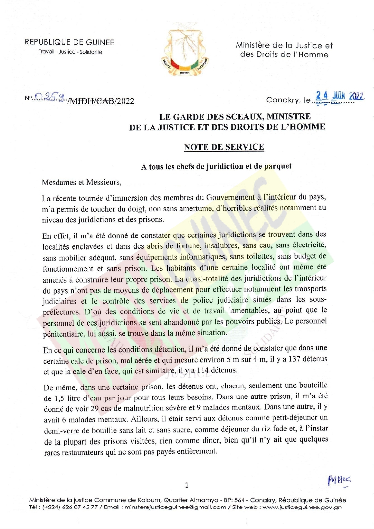 L’article Juges corrompus, mauvaises décisions, prisons surpeuplées : la note explosive du Garde des Sceaux… est apparu en premier sur Mediaguinee.org.