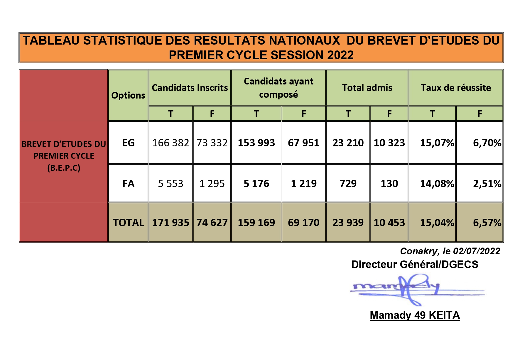 L’article Examens : 15,04% de taux de réussite au BEPC est apparu en premier sur Mediaguinee.org.
