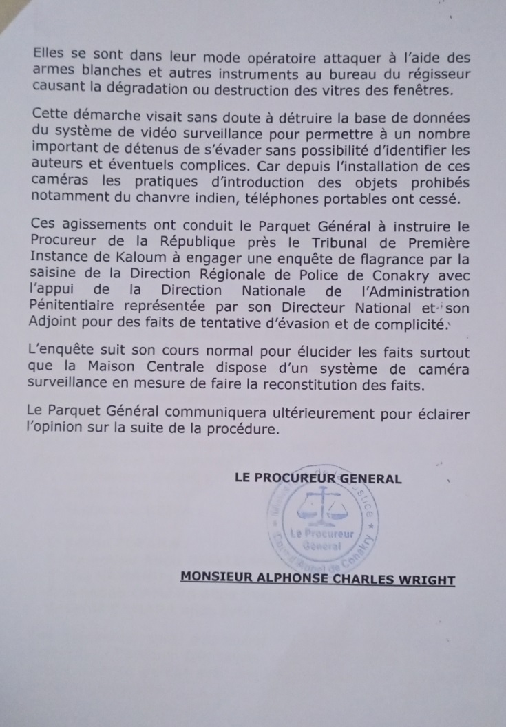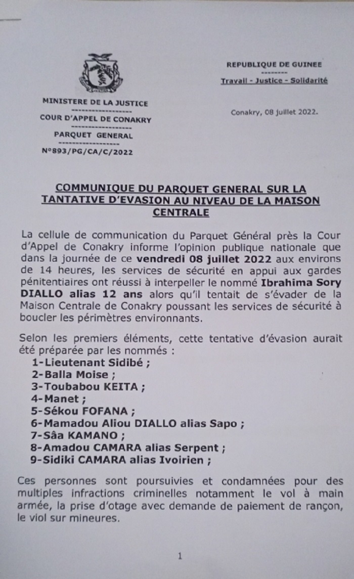 L’article Conakry. Une tentative d’évasion annoncée par le parquet général est apparu en premier sur Guinee7.com.