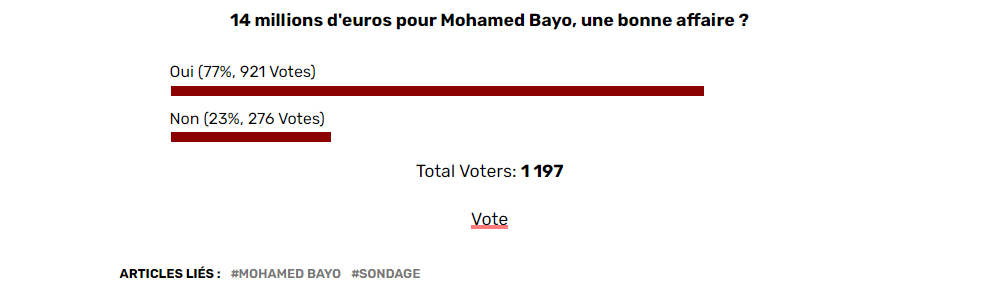 Ce sondage publié sur le site du petit lillois montre la confiance des supporters sur cette recrue de la saison. En sélection nationale, il compte déjà 9 matchs joués et 2 buts marqués