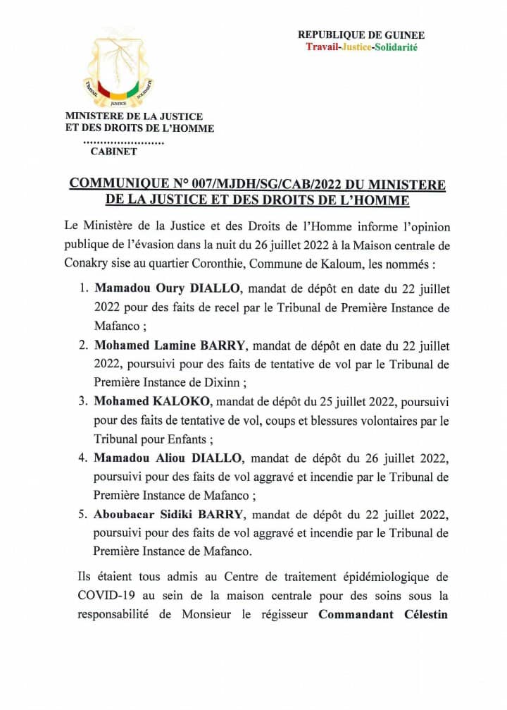 L’article 5 détenus s’évadent du centre Covid: le ministre Wright révoque le régisseur de la Maison centrale de Conakry est apparu en premier sur Mediaguinee.org.