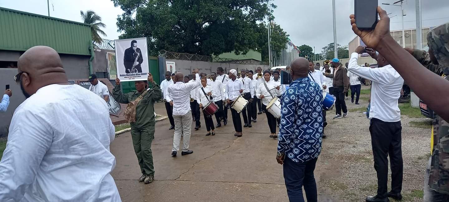 « La mort est inévitable certes, car c’est la dernière épreuve à laquelle aucune créature ne peut échapper. Mais assister aujourd’hui et de façon inopinée aux obsèques de Mamadou Aliou Barry, Maître Barry ou Maestro, l’enseignant, le musicien accompli, chef d’orchestre et autre est une épreuve extrêmement difficile et douloureuse. Cependant, en ma qualité de ministre de la Culture, du Tourisme et de l’Artisanat et au nom de Son Excellence monsieur le président de la République, chef de l’Etat, colonel Mamadi Doumbouya et de son gouvernement, permettez-moi de dire ces quelques mots aux membres de sa famille biologique et culturelle. Mamadou Aliou Barry, Maître Barry ou El Maestro, est cet artiste protéiforme que nous accompagnons tous aujourd’hui dans l’honneur et dans la dignité comme il est de droit pour tous les grands hommes de la nation qui se sont servis pour la gloire et pour la patrie. Mamadou Aliou Barry, il faut savoir que ton amour quasiment charnel pour la musique que tu as en passé très jeune des instruments de percussion en saxophone, ton talent et ta dextérité, t’ont hissé. Ce qui t’a valu d’être désigné malgré ton jeune âge chef orchestre fédéral de Conakry, le Kaloum Star dès 1967. Depuis en meneur d’hommes et pédagogue prolifique durant ta vie tu n’as fait que proccurer le bonheur et la joie de vivre autour de toi, à tes nombreux mélomanes en Guinée, en Afrique et dans le reste du monde. Rigoureux et exigeant dans le travail, toujours en quête de perfection, tu passais ton temps à scruter le temps et la nature pour tirer d’eux le plaisir que tu offrais avec générosité et humilité au public à travers les sonorités de tes instruments qui crévaient le plafond. Que dire à présent de l’honorable enseignant artiste, patient, attentif en toute circonstance .Maître Barry n’a jamais violé son sacerdoce: encadrer, éduquer et former . .. Tu t’es battu avec abnégation pour la survie du saxophone, hélas, aujourd’hui tu laisses le saxophone orphelin. », a déclaré Alpha SOUMAH, ministre de la Culture.