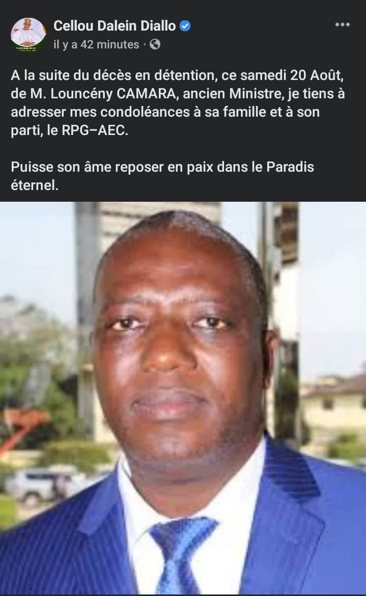Dans un post fait ce dimanche, le président de l’Union des forces démocratiques de Guinée, Cellou Dalein Diallo, a présenté ses condoléances à la famille du défunt ainsi qu’au parti RPG-ARC-EN-CIEL auquel appartenait l’ancien président de la CENI.