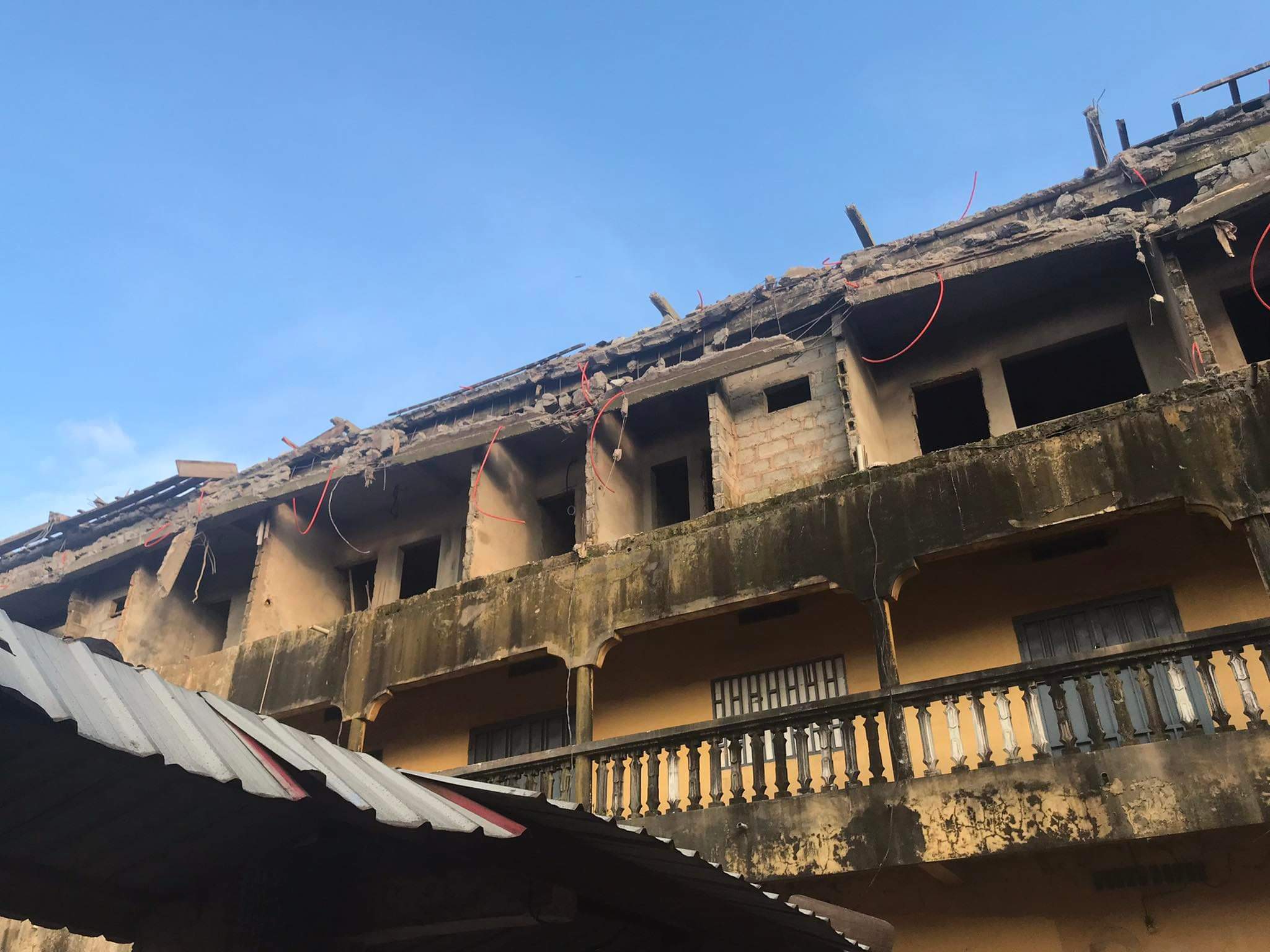 « Nous avons été alertés de la situation qui s’est produite ici dans cette soirée. Arrivé ici, on a été informé qu’il y avait des gens à l’étage d’autres à l’intérieur, voire à côté. Certains ont pris la fuite et ceux qui n’ont pas pu ont été blessés et ceux qui ont été grièvement touchés sont au nombre de 4, sans compter les marchandises et une dizaine de véhicules qui se trouvaient juste en bas, y compris le bureau du syndicat qui est juste en face ».