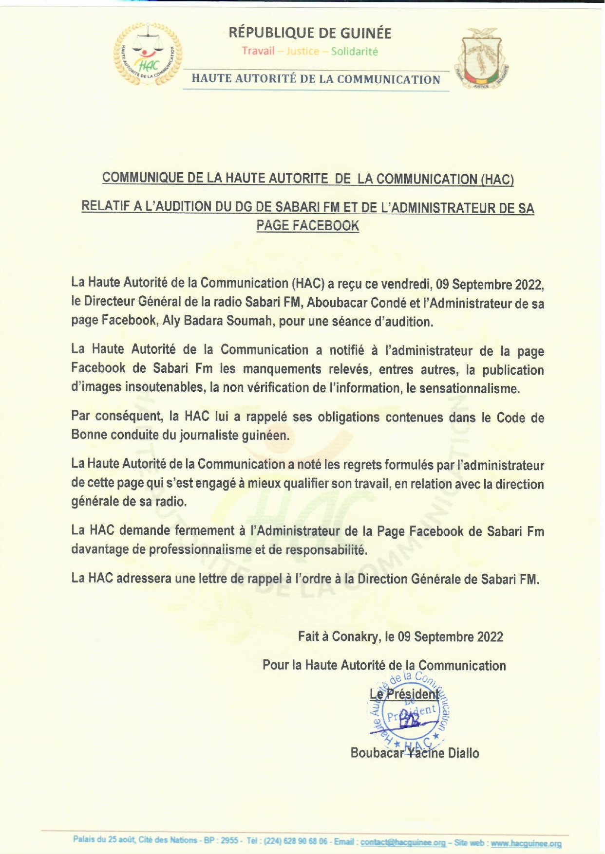 L’article La HAC rappelle à l’ordre l’administrateur de la page Facebook d’un média est apparu en premier sur Mediaguinee.org.