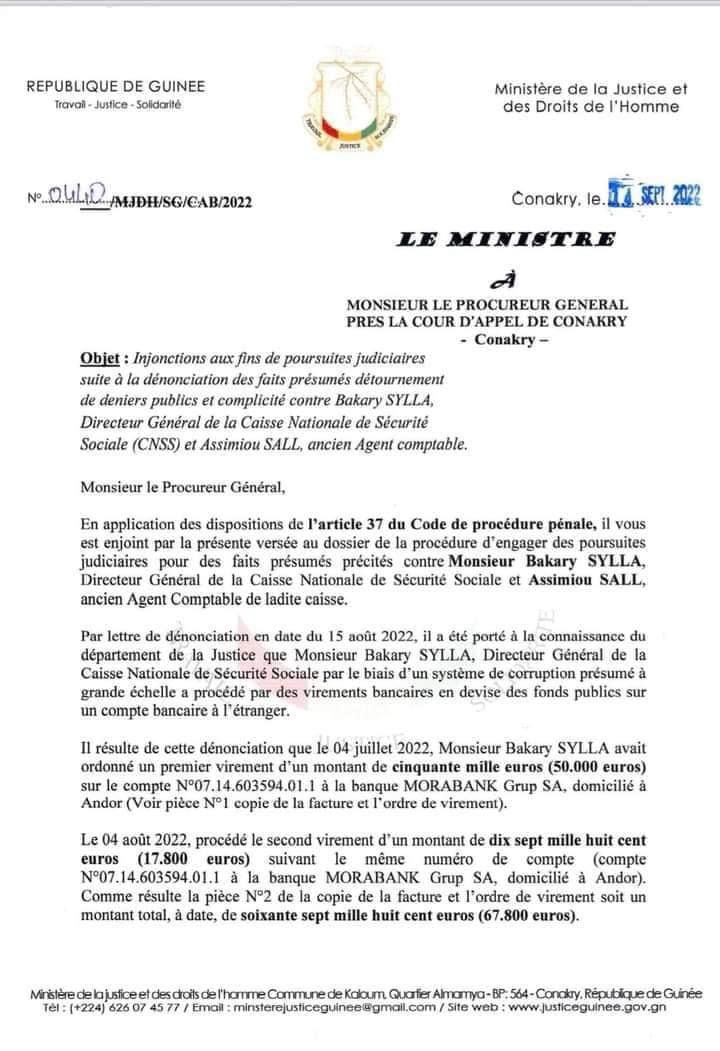 L’article Le DG de la Cnss dans la nasse : le ministre de la Justice ordonne de le poursuivre est apparu en premier sur Mediaguinee.org.