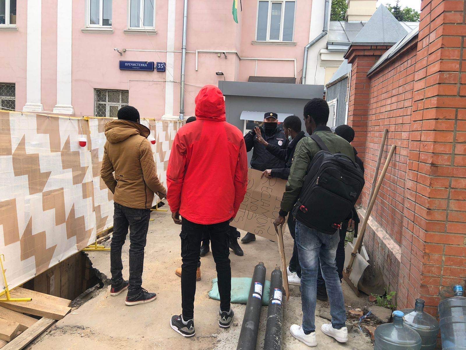 Munis de pancartes sur lesquelles sont mentionnées « étudiant oubliés « , « Nous réclamons nos droits », « nos compléments de bourses « , ce groupe d’étudiants grandement mobilisés dans la zone de la représentation diplomatique guinéenne (Moscou) a maintenu le cap jusqu’à l’arrivée de la police de Moscou, qui aurait été jointe par l’ambassade.