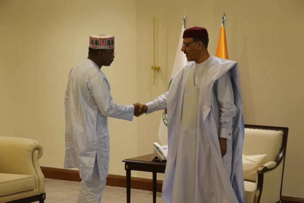 En marge de ce sommet, le Président du Conseil National de la Transition a été reçu en audience par le Président de la République du Niger. Son Excellence Monsieur Mohamed BAZOUM, après une heure et demie d’entretien, a exprimé sa confiance vis-à-vis des autorités de la Transition et saluer les avancées réalisées en un laps de temps par la Guinée. Le Président BAZOUM s’est résolument engagé à accompagner les autorités guinéennes pour la mobilisation des partenaires régionaux et internationaux pour la réussite de la Transition en République de Guinée. Il a même souhaité inviter le Président de la Transition, le Colonel Mamadi Doumbouya, à une rencontre du G5 Sahel qui se tiendra bientôt à Niamey.