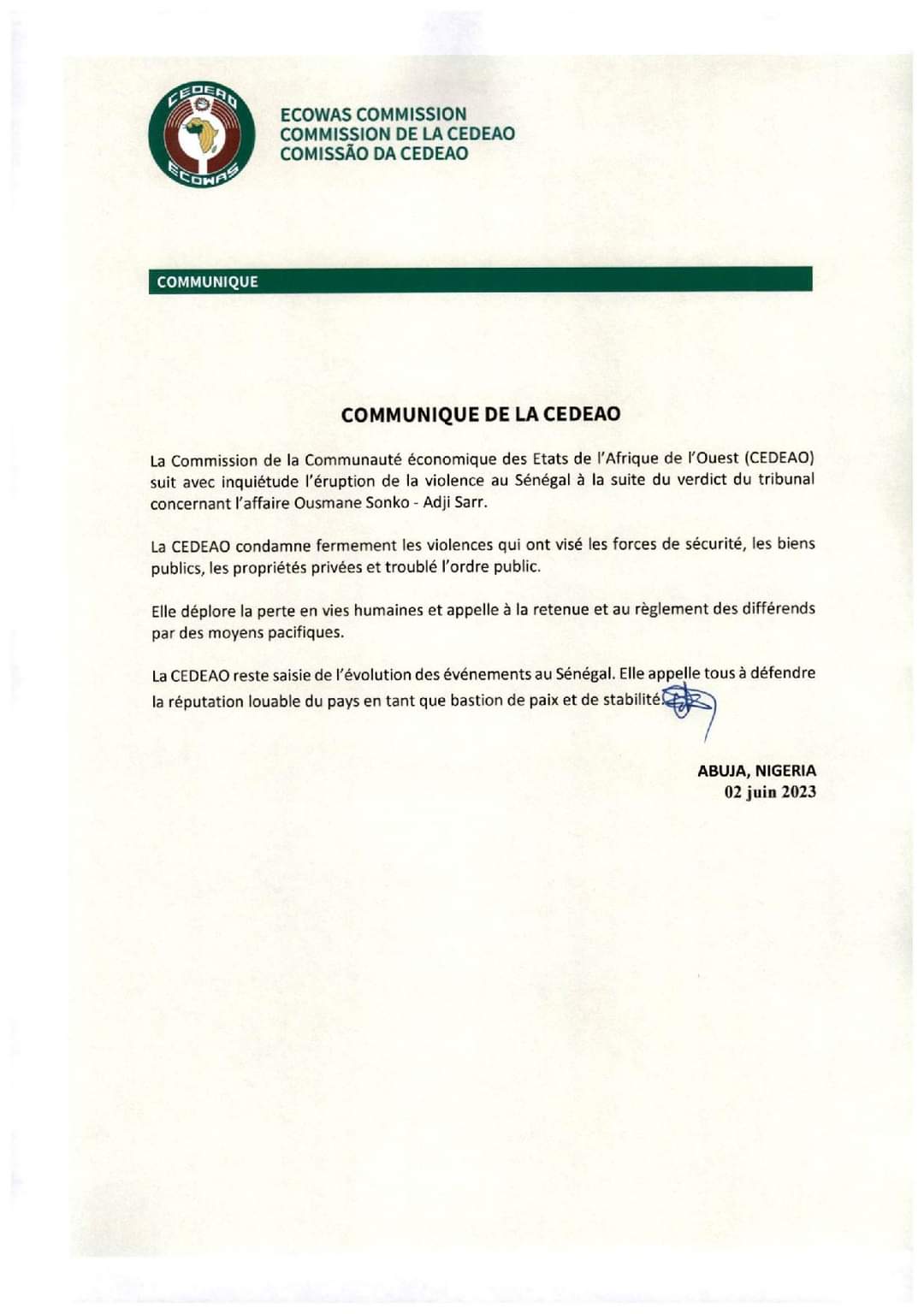 L’article Violences au Sénégal : la Cedeao condamne et appelle à la retenue est apparu en premier sur Mediaguinee.com.