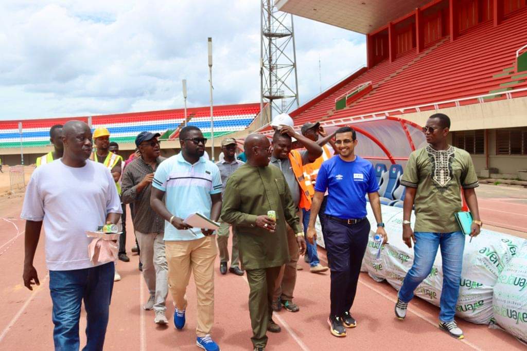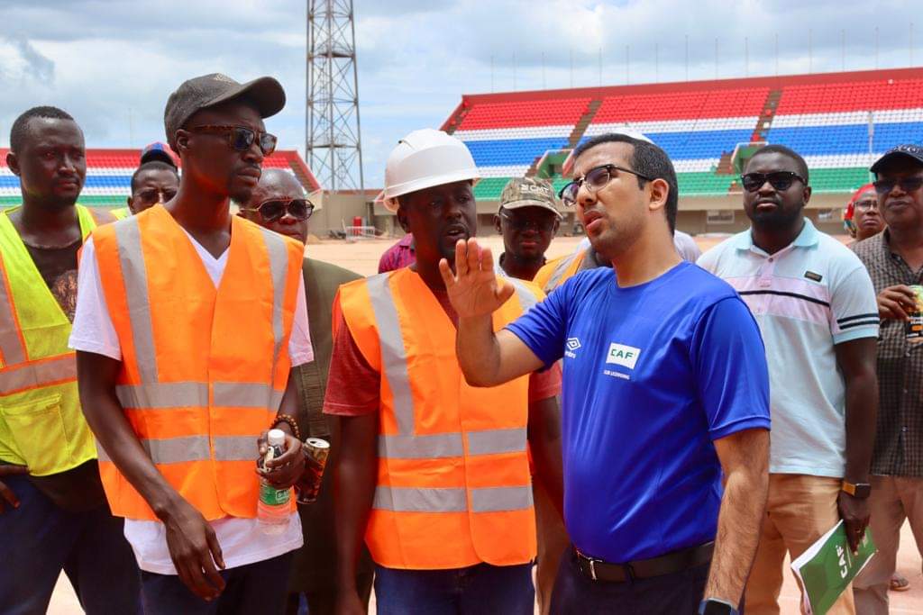 Comme on peut le voir sur ces images, une mission de la CAF dirigée par Mohammad Feizal Sidat a effectué une visite d’inspection préliminaire sur le chantier en cours d’exécution. En présence du ministre des sports et des cadres de la GFF (fédération gambienne de football).