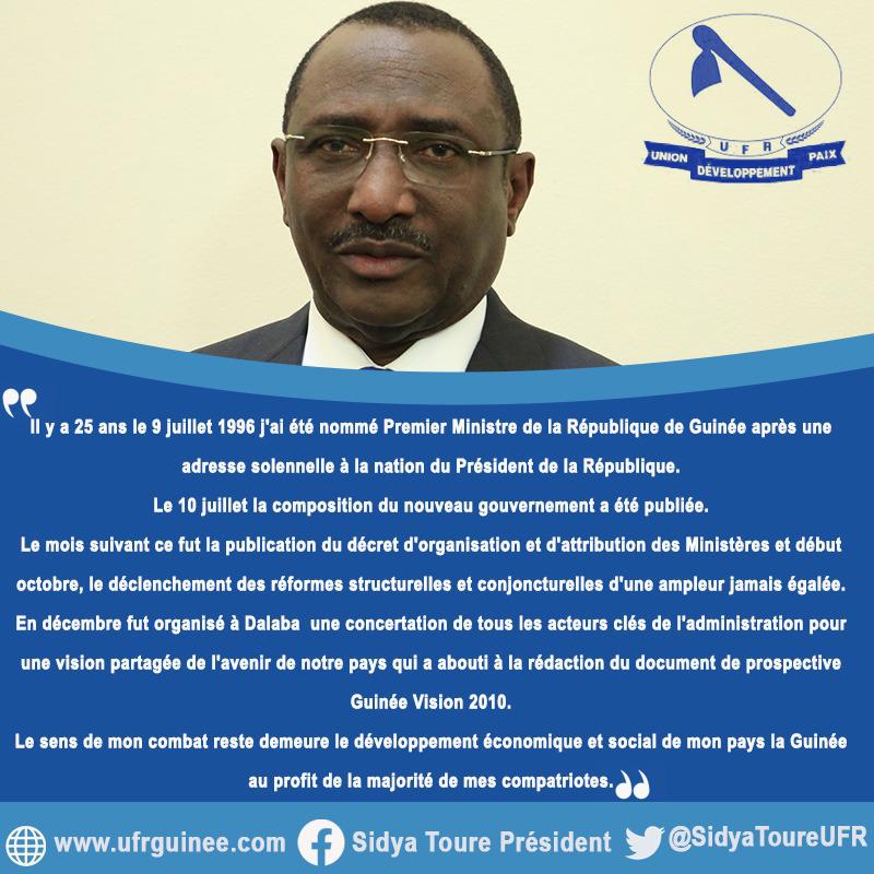 « Il y a 25 ans le 9 juillet 1996 j’ai été nommé Premier Ministre de la République de Guinée après une adresse solennelle à la nation du Président de la République.
