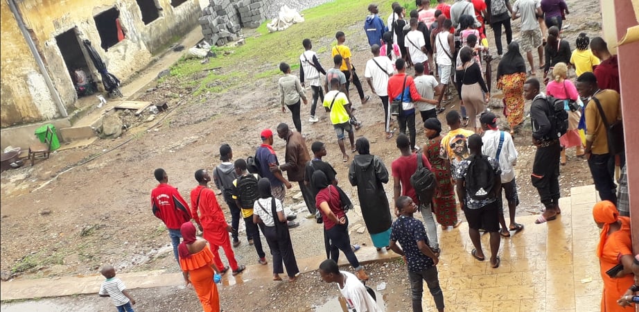 Pendant qu’il est 15h, la centaine d’élèves réunie sur un balcon tente de s’engouffrer dans une salle de classe pour se faire enrôler. À quelques minutes de notre arrivée, ces derniers descendent, pour des raisons citées ci-dessus. C’est-à-dire, la machine dédiée à la prise d’empreintes est déchargée.