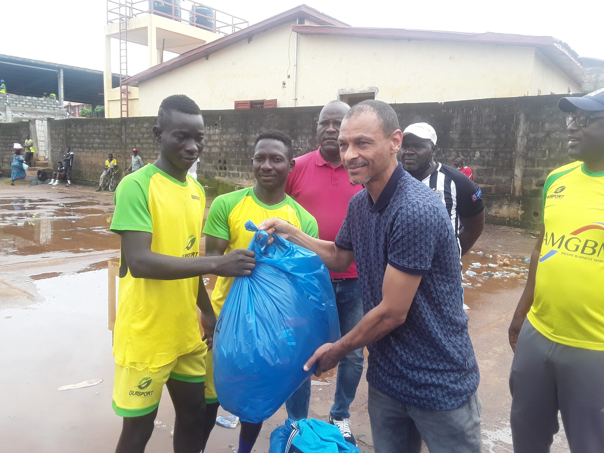 Cette remise s’est faite en présence de sa femme et des équipes bénéficiaires au nombre de 13, dont 2 évoluant en National. Le donateur, résident aux Pays-Bas et parrainé par des clubs Hollandais, veut assister et encourager les jeunes qui évoluent dans des conditions extrêmement difficiles à Conakry.