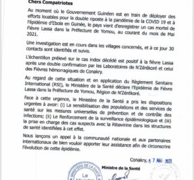 Dans une déclaration, le ministre de la Santé a annoncé lundi l’apparition de la fièvre Lassa à Yomou, au sud de la Guinée…...